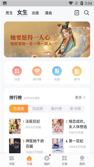 3、有男频、女频、出版、漫画,点击进入选择即可