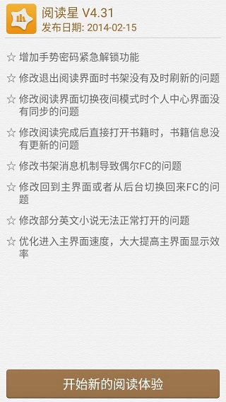打开阅读星4.3离线纯净版,会有欢迎阅读的界面,然后会看到版本的信息介绍;