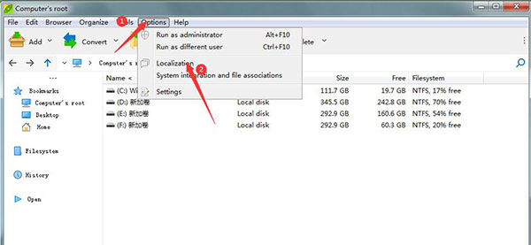 1、启动程序后,依次点击菜单”Options”–>”Localization”;