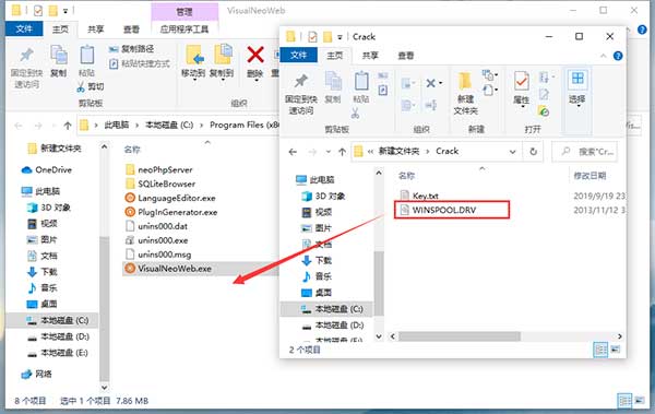 7、将软件包里Crack文件夹里的WINSPOOL.DRV补丁复制到软件安装目录里(默认C:\Program Files (x86)\VisualNeoWeb)。