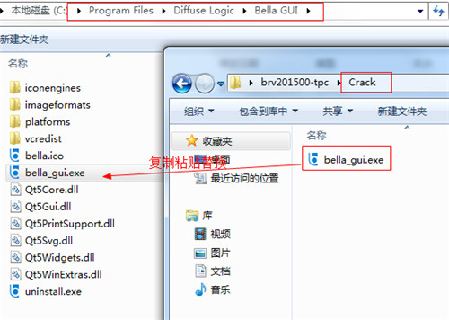 5、接着将Crack夹中的“bella_gui.exe”破解文件复制粘贴到安装目录中进行替换