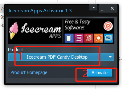7、打开Crack文件夹,双击运行Activator.exe文件,如图所示,选择Icecream PDF Candy Desktop软件,点击Activate按钮;