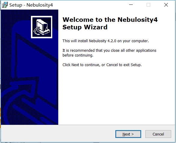 1、数据包下载好后解压,鼠标双击“setup_Nebulosity4.exe”运行,进入安装向导点击“next”进入下一步
