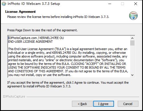 安装向导默认设置的软件默认安装路径为C:Program Files (x86)inPhoto ID Webcam