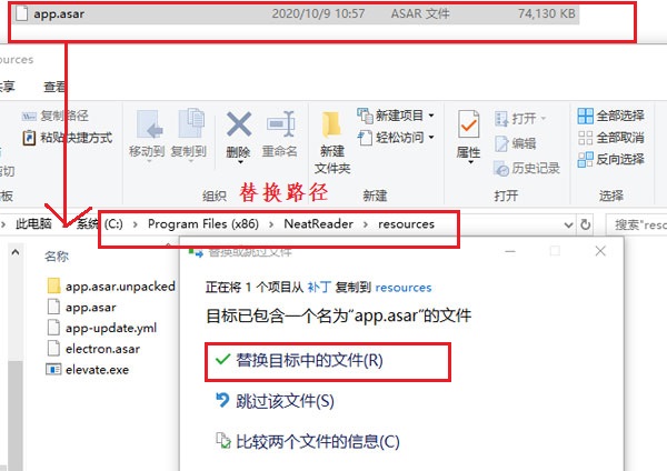 4、关闭软件,然后将补丁复制到“C:Program Files (x86)NeatReaderresources”目录中,替换之前的文件;