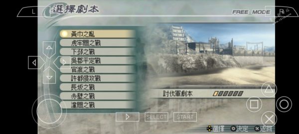 可以随意选择关卡的模式。当无双模式中的某个关卡通关后,即可在自由模式中选择该关卡以及相应的担当势力。