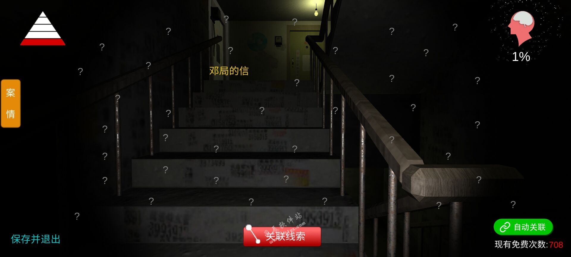 王勇破解版是一款非常不错且极具挑战性的冒险解谜类手机游戏,该游戏不仅有着3D写实的画面,而且还有着黑暗的风格以及压抑的氛围,力求为大家带来一场最棒的游戏体验感。在这个游戏里主要讲述了在张红君案件后,刘青春(民警)汇报局长说这个案件非同小可,疑点重重,并且孙美琪那层楼也发生了一些动静,为此局长特意嘱咐王勇(主人公)前去调查,那么王勇最终能否回溯起源,发现真相呢?这就要看你的本事如何了。破解说明:修改大量关联次数,点击右上角“脑袋-自动关联”即可看到。
