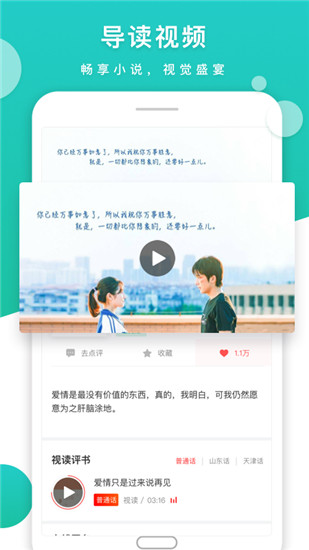 导读视频,畅销小说专门设置导读视频,让用户拥有最为华丽的视听享受。