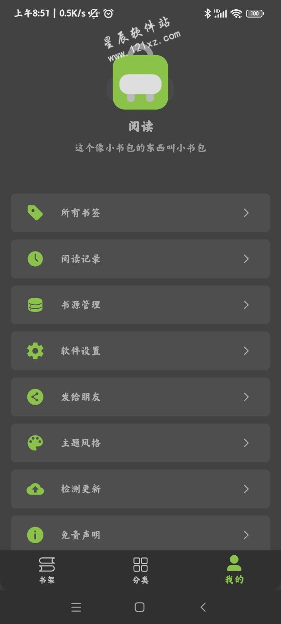 小书包app官方版是一款很优秀好用的手机免费阅读器,专门为爱看小说的朋友所打造的,可以让你免费阅读全网的小说,不需要一分钱费用,尽情畅读,想看什么小说都能得到满座,许多用户爱不释手呢!众所周知现在许多平台的小说都是需要付费的,而且广告一大堆,让人很烦恼,而今日小编带来的这款应用完全不会让你有这方面的烦恼,没有广告,且所有小说免费阅读,自由度超级高。软件有一个专门的分类专区,将不同题材的小说分门别类,这里有玄幻、奇幻、武侠、仙侠、穿越、都市、职场、悬疑等等一应俱全,热门小说经典小说都能轻松在这里找到,有任何感兴趣的小说可以直接加入到书架当中,随时想看就看,全本小说随心阅读,还能下载离线阅读哦!软件会为你实时保存阅读进度条,每次进来还能接着阅读,方便省时间,喜欢看小说的朋友快来下载试试看吧!
