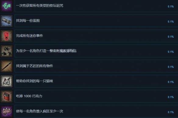 游戏克苏鲁异闻录2全成就列表一览为大家分享完毕,对于具体的解锁条件,列表中没具体提到,大家在游戏中可以慢慢探索一下,希望对大家游戏有帮助。