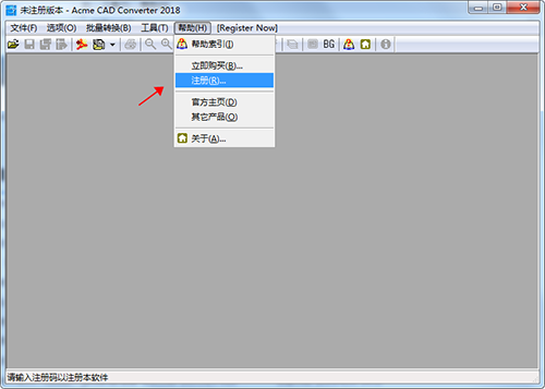 2.进入软件界面后点击“帮助”按钮中的注册选项