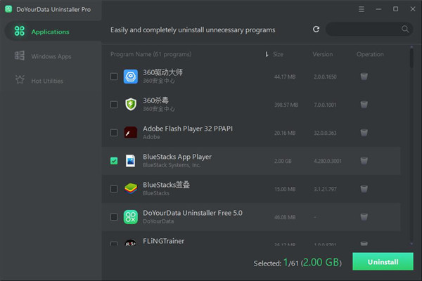 它允许您逐个或批量卸载程序。您只需选择要卸载的程序,然后只需单击几下即可帮助您彻底卸载它们。