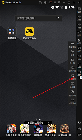 6、在模拟器当中右侧栏有着许多实用的功能,点击更多还可显示更多的实用功能