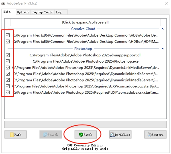 9、随后点击Patch进行激活,注意这个过程左边的勾选框会慢慢消失,耐心等待一下;