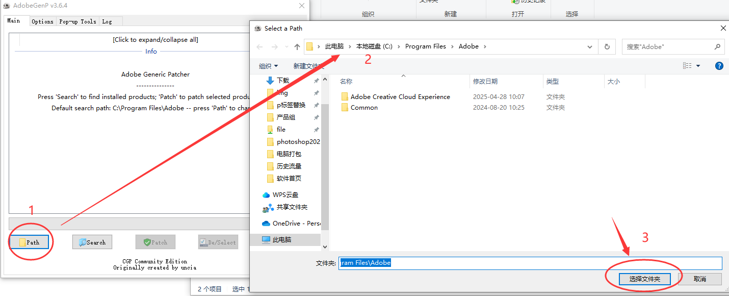 6、打开最开始解压的文件夹,找到【Adobe-GenP.v3.6.4-CGP.rar】进行解压,随后运行【AdobeGenP.exe】;