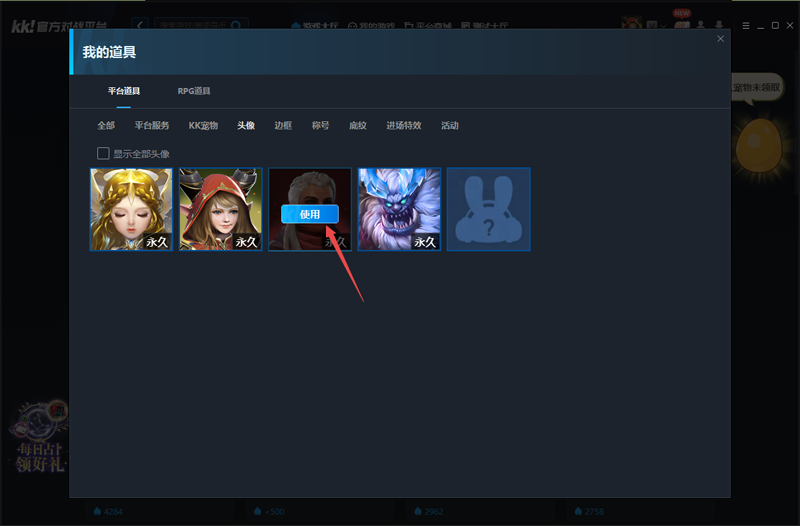 4、接着,选中要使用的头像,然后点击头像中的【使用】按钮即可完成头像的更换。