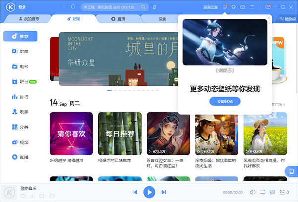 你是否有过忧愁,心情烦闷的时候呢?这时候听首歌无疑是最好的选择,小编这里推荐大家使用酷狗音乐电脑版,这是一款运行在电脑上的音乐播放软件,比起在手机端在这里声音更加洪亮,字体也更加清晰明了,大家可以有个良好的视觉体验。另外软件作为当下年轻人最喜欢的播放器之一,其内部涵盖了时下最热门最火爆最全面的正版授权音乐,不管你是想听摇滚、dj、抒情,这里通通可以满足你的需求,为你带来高品质的音乐盛宴。并且软件最大的亮点便是它的评论功能,能够让你在喜欢的歌曲下面和广大的网游进行讨论,抒发自己的情感,和他们产生心灵语言上的共鸣,非常的有趣,需要的用户快来下载体验吧。