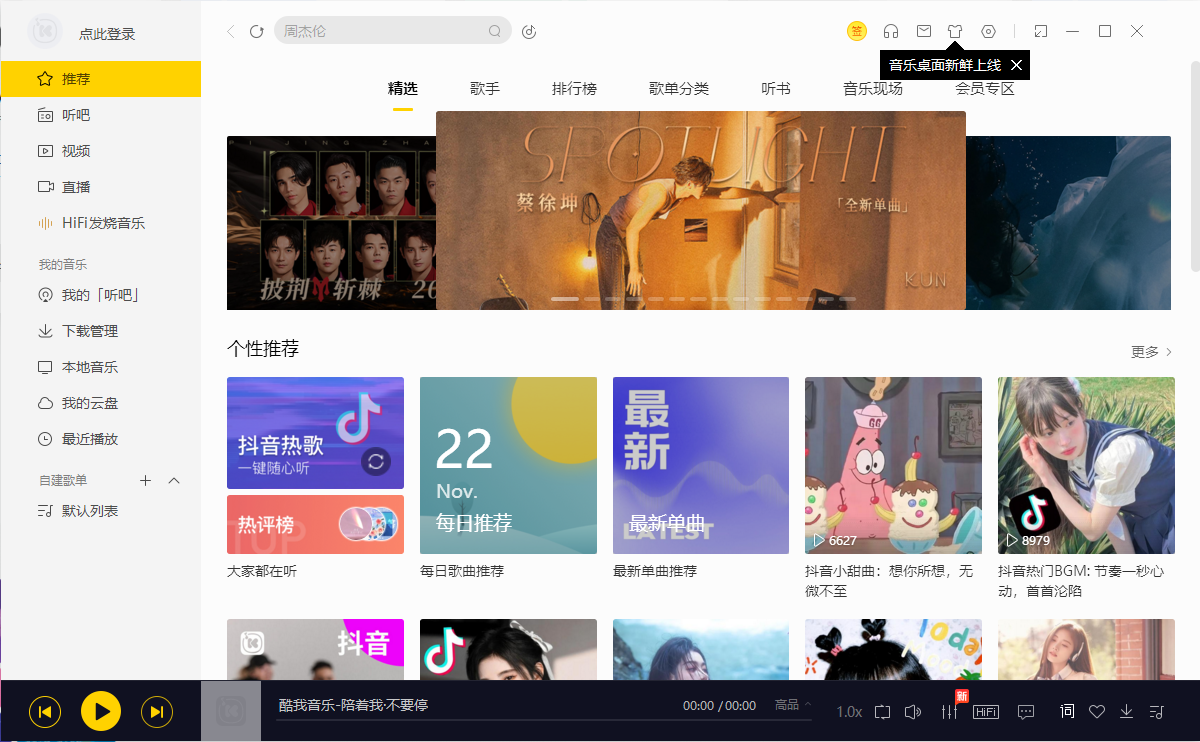 1、打开酷我音乐电脑版,进入到主界面,