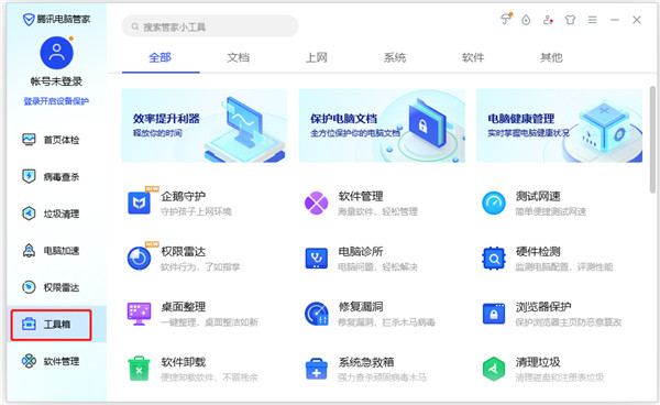 6、点击工具箱,里面为用户提供了文档、上网、系统、软件、其他等等小工具;