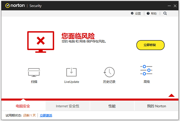 诺顿杀毒norton security是赛门铁克推出的一款全方位的防病毒与安全软件,除了原有的防毒功能外,还具备防间谍等网络安全风险的功能,能够有效防御黑客,病毒和木马,可以满足用户对于新一代安全防护的需要。软件最大的特色在于:防止病毒和在线攻击、身份保护和安全在线购物、100%安全保证、混合安全、多设备安全管理、云文件备份等等功能,真正帮助用户抵御病毒、勒索软件和其他在线威胁。