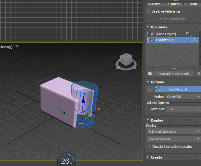 注: 使用非常小的“体素大小”值可能会生成大量几何体,这可能会导致 3ds Max 冻结。默认的“体素大小”(1.0) 通常可捕获大多数细节,但具体取决于布尔对象的大小。