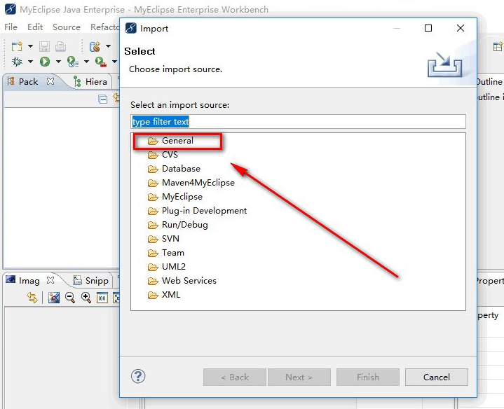 3、在”Import”窗口中,选择第一个”General”,