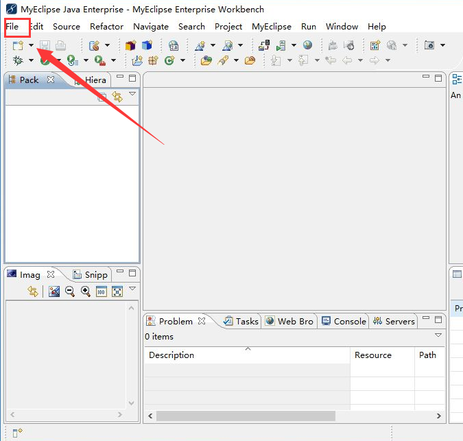 1、打开myeclipse2023官方电脑版,点击页面左上角的File选项,