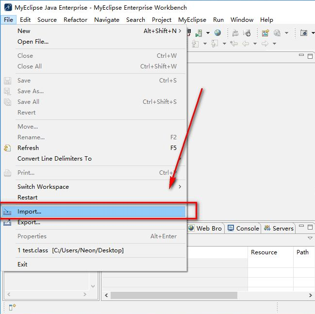 2、在给出的选项菜单中点击”Import”,