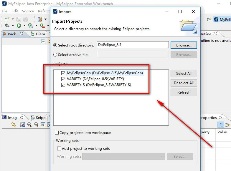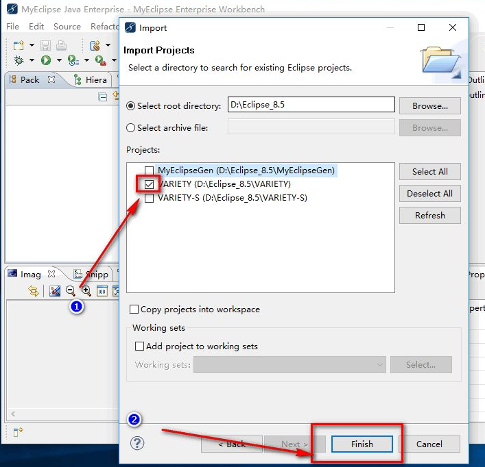 8、把想要打开的那个项目前面打上勾,然后点击下方的”Finish”,这样就成功的导入项目了。
