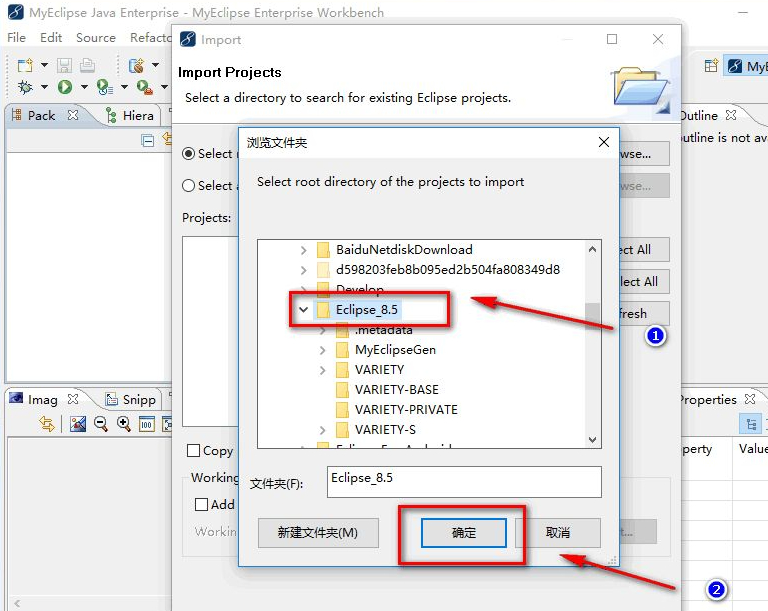 6、找到存放项目的文件夹位置,然后点击”确定”,