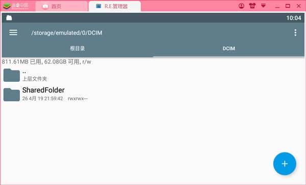 3、打开模拟器首页-》系统应用-》R.E.管理器-》sdcard/DCIM/SharedFolder: