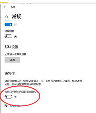 6、打开常规后;下拉下来找到兼容性—默认关闭;选择开启。
