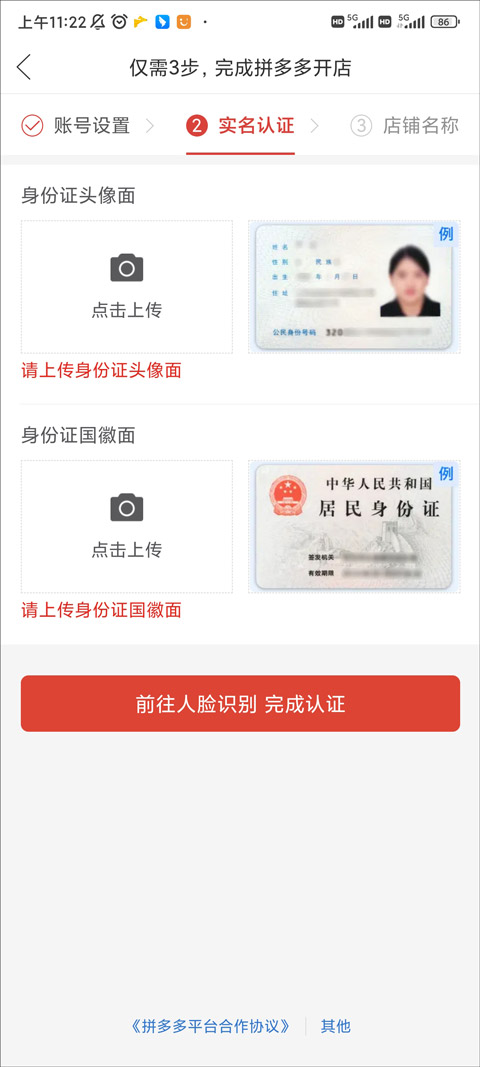 6、设置完密码后,即可进行实名认证,以及店铺的名称、店铺类型、主营类目的设定,且还需要根据页面提示正确填写您的入驻信息、上传相关资质。