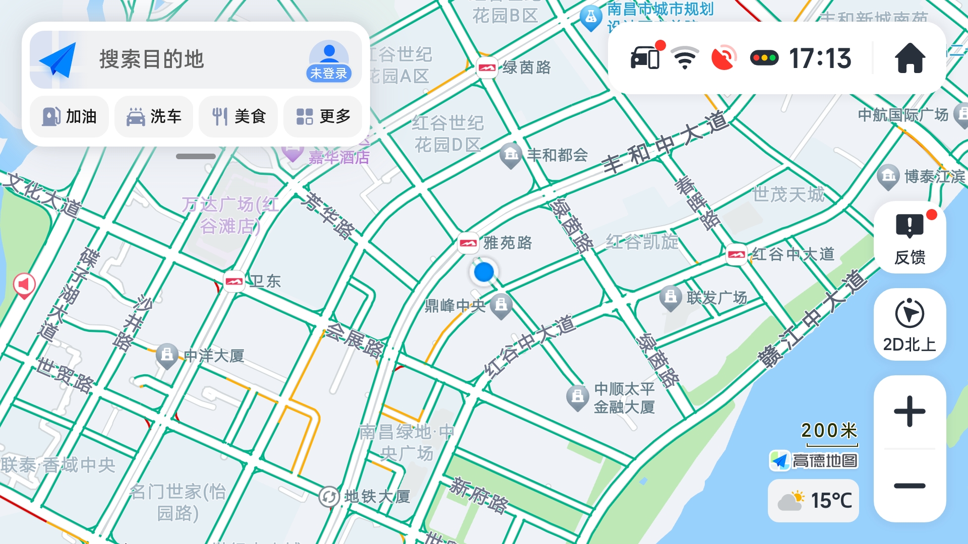 1、打开高德车机共存版最新版本,进入应用主界面,可以看到自己的当前位置,点击左上角【搜索目的地】选项,
