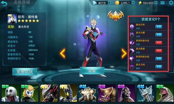高级装备永远都是小伙伴们通往游戏大神的捷径之路,在奥特曼中装备分为绿色装备<蓝色装备<紫色装备<橙色装备<红色装备<彩色装备六大种类,其中无论是绿色、蓝色还是紫色都是过渡阶段的装备,这三种也是最容易获取得,到了橙色装备开始获取难度就开始变得困难了但是也只是前期使用,游戏中真正重要的装备是红色装备与彩色装备!