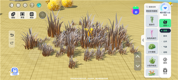 光有一颗草可不行,真正的老六都是躲到草丛里的,我们还需要更多的草来容身,这样我就开始复制之旅了!复制可以选择复制数量,根据方向平移和垂直都可以复制