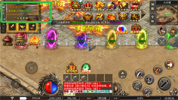 3、打怪爆神装,闯关挂机boss统统送真充卡。