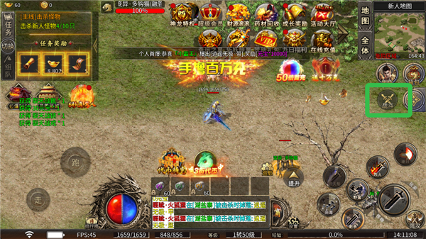 4、点击战斗可开启挂机状态,双击地面则可退出该状态。