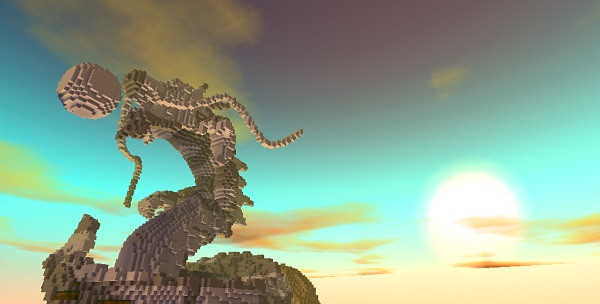 3、创造、建设将天马行空的想象用方块拼接成具体的模样,这是你展现创意的天堂。下图是熊宝同学和他的小伙伴们历时半个月完成的作品,飞龙在天。