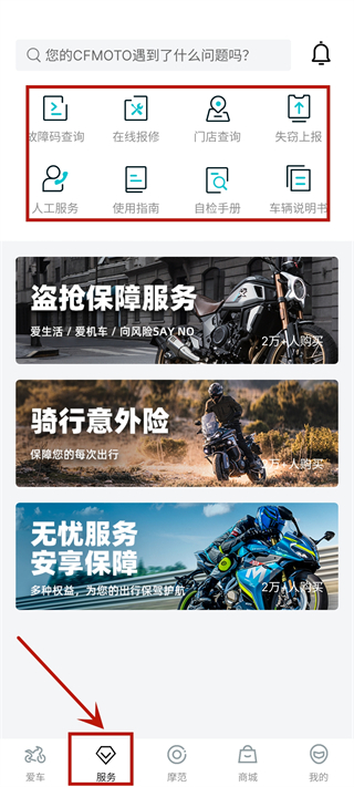 使用中有任何问题或建议,请前往【帮助中心】-【反馈】或通过邮件it@cfmoto.com 告诉我们哦!