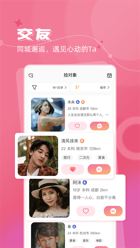 【同城寻缘】定时推荐附近、同城在线寻爱的单身与您聊天交友,助您觅得真爱,找到合适自己的有缘人,让生活不在孤单寂寞;