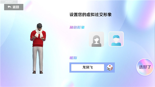 1、进入APP后,我们先创建一个角色,这也是我们后续在虚拟世界中的主要形象。