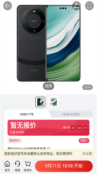 华为Mate60系列在华为商城App官方版预约购买。