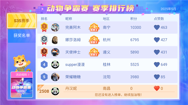 3、里面还有一个排行榜,实时更新其它小伙伴的积分。
