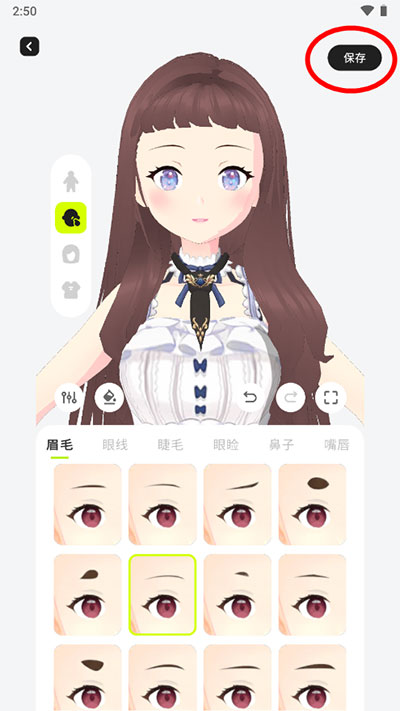 完成捏脸以及服装的搭配之后,可将生成的形象来一键保存。