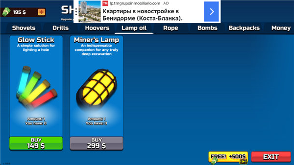 玩家2:通过在土地里挖掘出财宝的方式来进行自己的资金积累,同时又能够利用这些积累的资金来升级自己的挖掘工具。