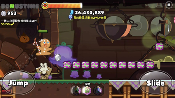 跑跑姜饼人烤箱大逃亡官方版又名CookieRun: OvenBreak,人气酷跑游戏开跑!你准备好了吗?快来帮助可爱的饼干逃出魔女的烤箱,一同踏上冒险的旅程吧!快从烤箱中拯救可爱的饼干们吧,主角是饼干! 可怕的魔女想把饼干全部吃光! 快趁饼干被放进烤箱烤之前,帮忙它们逃脱吧。游戏操作简单,快帮助饼干们用跑、跳&滑行的方式逃脱,利用跳跃与滑行,获得果冻或闪避障碍物。 只要吃掉游戏中的字母果冻,就能进入BOUNSTIME! 可别错过这个一举获得大量金币的好机会。与好友同乐, 与好友互相较劲排名,让游戏更有趣, 邀请好友加入游戏,还能获得特别奖品哦。许多充满个性的角色, 您没看过、没吃过的饼干&宠物居然有这么多! 除了外观之外,它们也拥有各式各样的能力,绝对让您玩不腻。