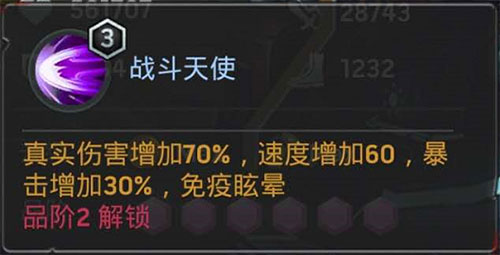 二技能:直接70%的真实伤害加成,提高速度和暴击,最重要的是还有免疫眩晕!使艾莉亚得到了全方位的提升!