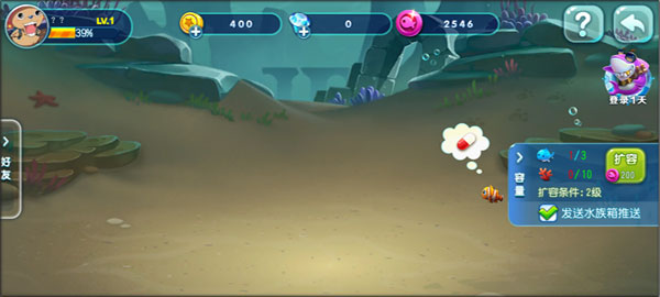 这是一个养鱼的地方,根据等级开放更多小鱼购买,这个完全纯养成休闲模式,没有什么技巧,记得每天给小鱼们喂食和打扫卫生就可以啦,根据自己喜好喂养小鱼吧。