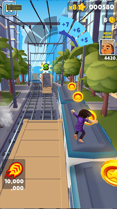 地铁跑酷作为一款风靡全球的3D立体跑酷游戏,已多次登顶Appstore中国、美国等108个地区的游戏排行榜,其拥有非常精致细腻的游戏画面,里面卡通的风格让整个游戏更加的具有趣味性,玩家在这款游戏可以尽情的享受游戏带来的乐趣。